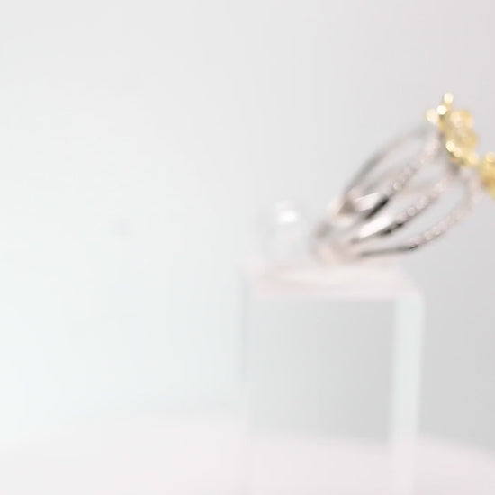 L'anello "Flowers" presenta un elegante design con tre fiori gialli arricchiti da pietre bianche, montati su un gambo bianco in argento 925 anallergico. La struttura regolabile garantisce una vestibilità perfetta, unendo comfort e raffinatezza. Un gioiello esclusivo che valorizza con originalità ogni look.