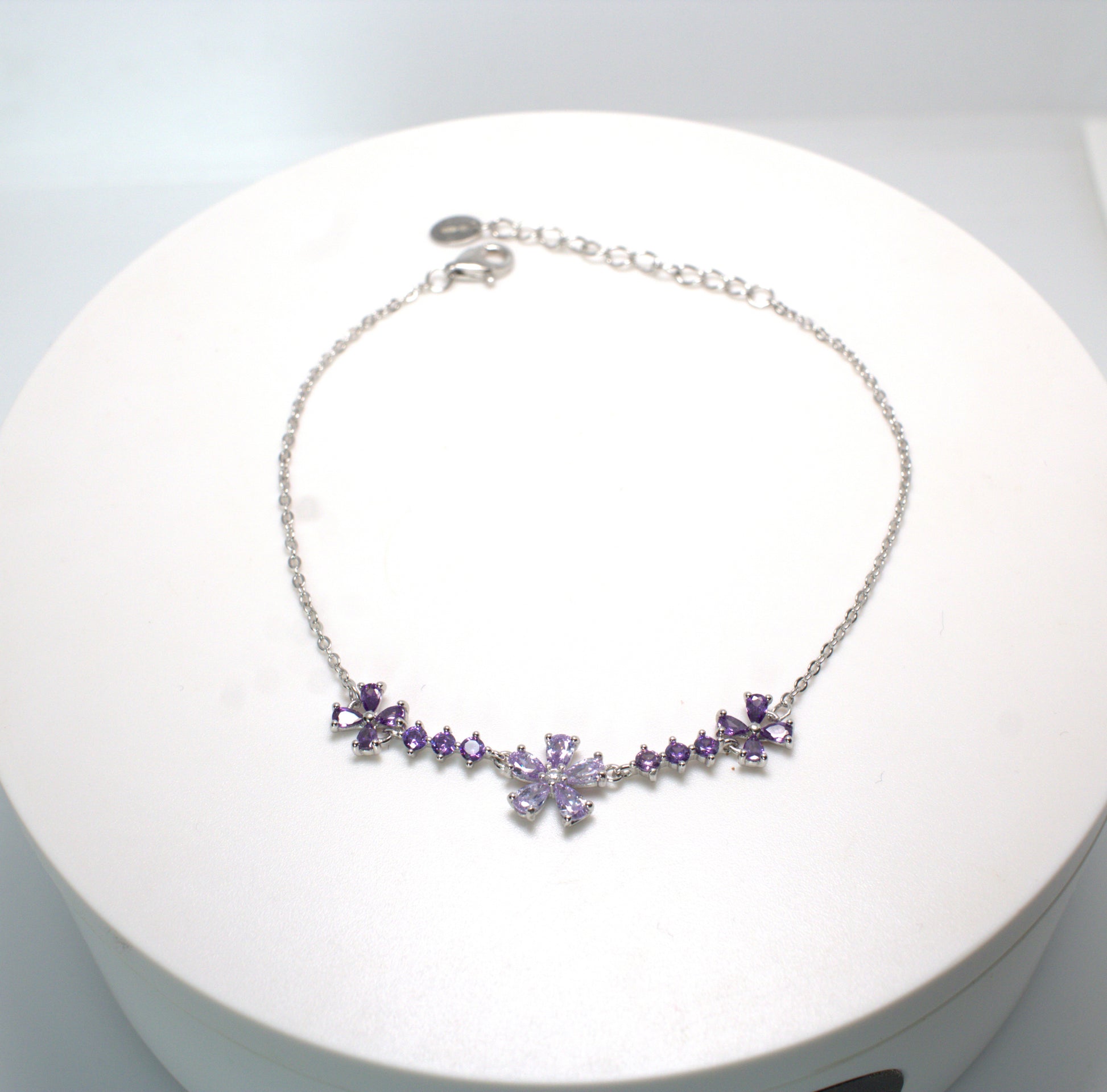 Elegante bracciale "Flowers" realizzato in argento 925% anallergico, garantendo sicurezza e comfort per la pelle. Le pietre Duraliti bianche conferiscono un tocco luminoso e raffinato. La lunghezza regolabile da 18 a 21 cm con moschettone assicura una vestibilità personalizzata, rendendolo perfetto per ogni polso. Un accessorio versatile e sofisticato, ideale per completare con stile qualsiasi outfit.