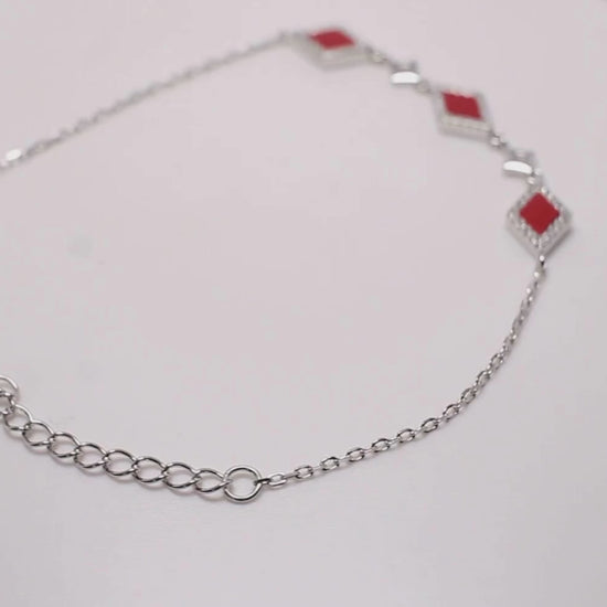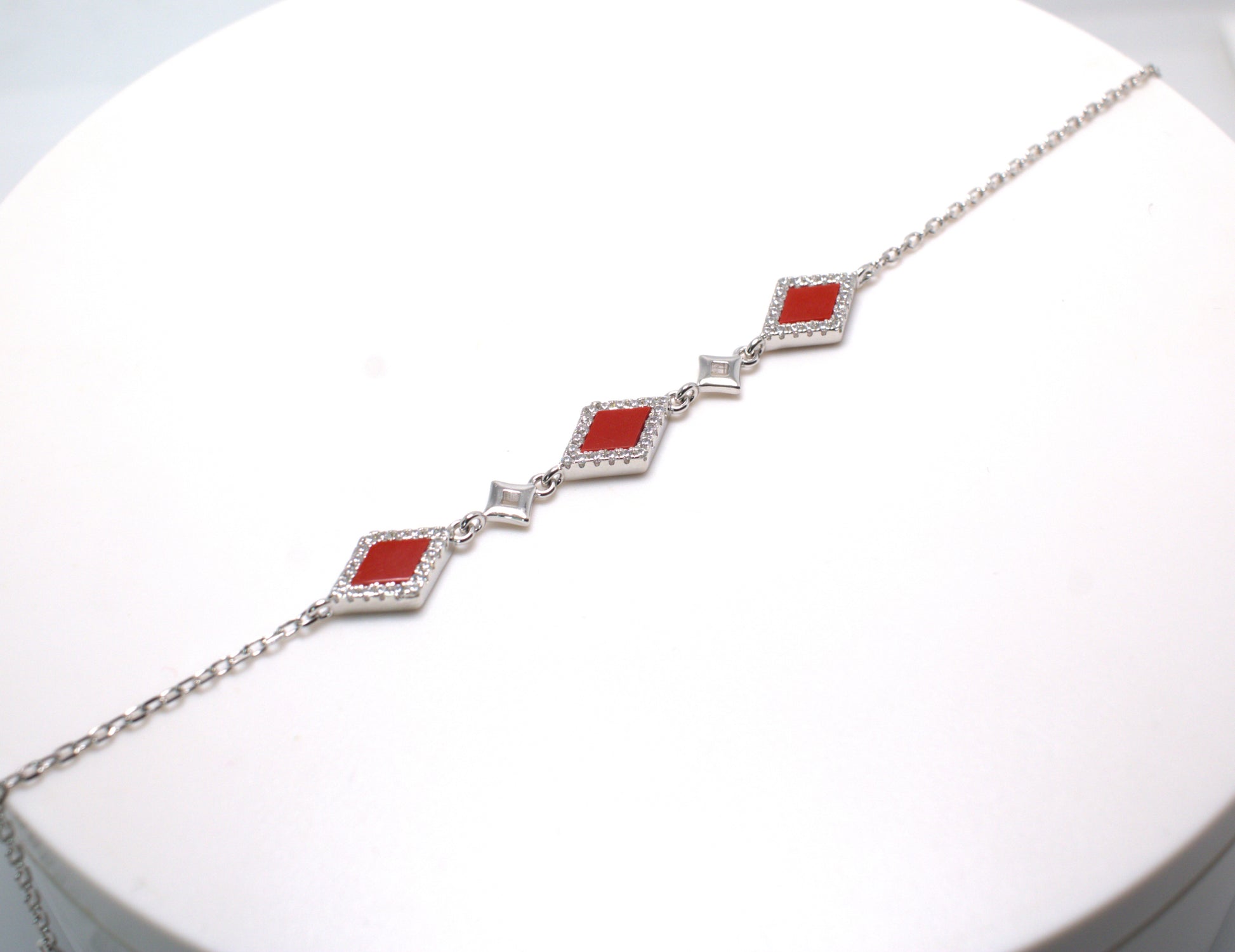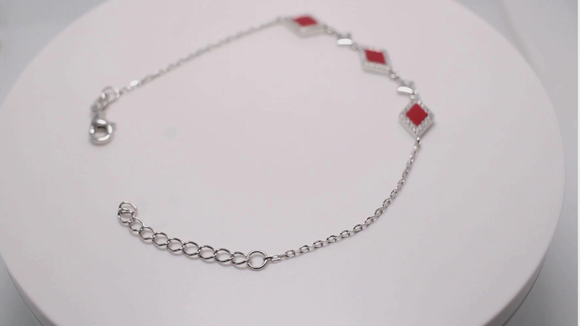 Questo bracciale "Old Money" combina l’eleganza dell’argento 925 con il sofisticato smalto a fuoco rosso, valorizzato da delicate pietre Duraliti bianche. Il design a rombi rossi, raffinato e distintivo, si adatta perfettamente grazie alla sua regolabilità da 18 a 21 cm, assicurando una vestibilità impeccabile e un tocco di esclusività a ogni outfit.